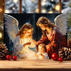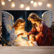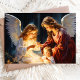 Celebrar o verdadeiro significado do Natal com este cartão maravilhoso com dois anjos a observarem amavelmente uma criança numa cena de serenidade. Este design eterno é perfeito para compartilhar fé e alegria com os entes queridos durante o feriado.