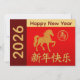 Cartão De Festividades Ano do Cavalo 2026 - Ano Novo lunar chinês