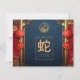 Celebre a alegria do Ano Novo Chinês do Cobra com nosso cartão de ouro vermelho e cartões de natal azul personalizado com a tradicional lanterna chinesa vermelha e dourada e flores douradas. Dentro o cartão de boas-vindas "Desejando-lhe prosperidade e boa sorte no Ano do Cobra 蛇 年 快 A Família Zhang" está escrito em vermelho. Você pode personalizar este design com seu nome ou sua família clicando no botão "Personalizar".