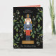 Ilustração original de um soldado clássico de quebra-nozes com azevinho e visco ao fundo. Espaço opcional para foto no interior.