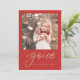 O Cartões de foto de Natal simples e rústico apresenta um roteiro bonito de regozijo, e burlap olha para trás do cartão.