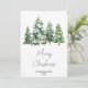Se você está procurando por um simples cartão de Natal minimalista, bonito e facilmente editável. Este é perfeito para você. E como podem ver, o design apresenta uma aquarela feita e desenhada de pinheiros e apresenta. Com caligrafia Whimsical de NATAL MERRY. E seu nome familiar e ano sob ele. Com um retorno verde e saudações de Natal personalizáveis.