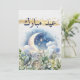 Cartão De Festividades Aquarela Lua Dourada Eid Mubarak Escrita Árabe
