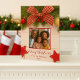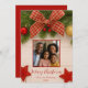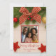 Celebre o espírito da época com este belo cartão com fotos da família de Natal! Apresentando um arco tradicional vermelho e dourado aninhado em pinheiros verdes, ornamentos clássicos e estrelas de feltro encantadoras, esta imagem irradia calor e alegria de férias. Carregue facilmente sua foto favorita da família no modelo. Com seu convidativo fundo de madeira neutro e texturas ricas, este cartão com fotos estabelece a cena para acolhedoras memórias de Natal e charme de eterno.