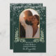 Cartão de Natal elegante foto de arquivo de água botânica com arco dourado, com flocos de neve caindo em um fundo verde esmeralda festivo. Personalize com sua mensagem especial de Natal, nomes e ano. Criado por Thisisnotme©