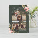 Este cartão de natal floral de inverno, alegre, com quatro fotos de Natal, tem um design brilhante e elegante com ilustrações de aquarelas vibrantes de poinsetos vermelhos e cor-de-rosa e delicados verdes de inverno. Com elementos botânicos quicos como pinho, sagrado e bagas de inverno, a paleta colorida do cartão, incluindo rosa poeirento e sotaques de ouro, adiciona um toque de boho a uma estética de férias moderna. Esta design de dezembro festiva combina uma vibração leve e caprichosa com um tema floral perfeito para a época de Natal.