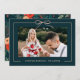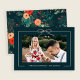 Belo Cartões de foto de Natal floral de chá escuro apresenta um bonito e delicado arco de pincel e um padrão botânico vermelho festivo e cor de laranja esbranquiçado, com uma fotografia de enquadramento central.