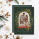 Este cartão chic de Natal apresenta sua foto em forma de arco com folhagem/verde de inverno e um arco/fita vermelha. O verso apresenta sua foto e mensagem em um plano de fundo verde. Personalize-o para as suas necessidades. Você pode encontrar produtos correspondentes na minha loja.