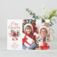 Enviar saudações de Feliz Natal nesta temporada de festas com o cartão de saudação de fotos com uma foto e uma tipografia moderna de escrita de caligrafia para a saudação destacada com um arco vermelho de aquarela e holly. ASSISTÊNCIA: para obter ajuda com a modificação ou personalização do design, redimensionamento, transferência do design para outro produto ou, se você quiser coordenar itens, entre em contato com o designer ANTES DE ENCOMENDAR através da guia MENSAGEM de bate-papo Zazzle ou envie um e-mail para makeitaboutyoustore@gmail.com.