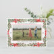 Envie uma mensagem calorosa de alegria de Natal aos amigos e à família com este luxo cartão com fotos que apresenta a sua melhor fotografia horizontal e de orientação paisagística, emoldurada por uma delicada fronteira vermelha e embrulhada com uma terra ilustrada de folhas sagradas e bagas vermelhas que está amarrada no topo e nos lados com fitas encantadoras e arcos de salto. As fontes de script adicionam à elegância e fornecem amplo espaço para personalizar a saudação com sua própria mensagem de alegria para a estação. O texto fácil de personalizar no backer ecoa o estilo da frente, mas deixa espaço para uma mensagem muito mais longa para atualizar seus entes queridos com o que aconteceu e como sua família foi abençoada ao longo do ano.
