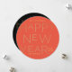 Placa de Feriado de Felizes anos novos de Texto Personalizados Redondos. Esta bela design moderna com a mensagem 'Feliz ano novo' em lindas folhas de papel Faux cores texto para um na moda saudar feriado e um cartão de ano novo. As cores das placas e a maioria do texto são totalmente editáveis.