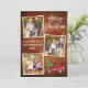 A Placa de Férias de Colagem de Fotos do Natal 3 do Espincel Moderno inclui Fita de Artesanato Vermelho e Caminhão Vermelho de Vintage com Cor de Água com Árvore de Natal. Madeira russa do campo.
