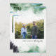 Cartões de foto de Natal impressos personalizados modernos com um modelo DIY simples para personalização. Este design de arte tem um fundo de abstrato de pintura em tons de verde e azul. Adicione a foto da sua família, saudações pessoais, nomes e o ano. Use as ferramentas de design para editar as fontes e as cores. O verso tem espaço para adicionar mais fotos e texto.