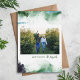 Cartões de foto de Natal impressos personalizados modernos com um modelo DIY simples para personalização. Este design de arte tem um fundo de abstrato de pintura em tons de verde e azul. Adicione a foto da sua família, saudações pessoais, nomes e o ano. Use as ferramentas de design para editar as fontes e as cores. O verso tem espaço para adicionar mais fotos e texto.