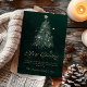 Envie votos de Natal atemporais com este cartão de Natal elegante, apresentando uma árvore de natal verde sempre brilhante pintada à mão e colocada contra um fundo verde profundo. O letreiro dourado brilhante “Feliz Natal” adiciona um toque de luxo festivo e sofisticação — perfeito para saudações familiares, de amigos ou de negócios.