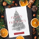 Ilustração mínima da árvore de natal com "feriados felizes" (cor vermelha de marrom é editável)