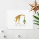 Ilustração de girafa decorando uma árvore de Natal com uma estrela. Personalize o nome.