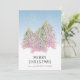 Cartão de Feriado Artístico de Árvore Árvore de Natal, cor verde-rosa. Desenho de aquarelas festivas de árvores de Natal pastel, rosa e verde, com neve e um desejo Feliz de Natal. Personalize o texto na frente e a mensagem na parte traseira.