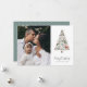 Este belo cartão fotográfico apresenta uma árvore de Natal desenhada a partir da folhagem de inverno, bagas e um veado bonito. A parte de trás contém faixas brancas na diagonal sobre um fundo verde-claro equivalente.