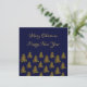Cartão De Festividades Árvore de Natal de ouro cintilante no Natal azul