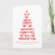 Filas de pássaros vermelhos sentados em praias formam uma árvore de Natal. Um design único de cartão de Natal. Adicione seu próprio texto ao dentro para um sentimento pessoal. Doce dizendo: "O Natal é um momento em que você fica com saudades de casa mesmo quando está em casa.