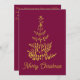 Um visual clássico e tradicional, este cartão tem uma árvore estilizada que dá ao cartão um clima vitoriano. Este design original apresenta uma árvore dourada contra um fundo burgundy. Dê aos seus cumprimentos de Natal um visual elegante com este cartão.