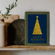 Este design apresenta uma árvore de Natal brilhante na moda a ouro sobre um sofisticado fundo azul escuro, A elegante borda dourada adiciona um toque refinado, fazer perfeito para compartilhar com sua família e amigos nesta época festiva. Isso pode ser facilmente personalizado com seu nome de família.