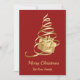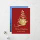 Árvore de Natal presente - fundo vermelho, árvore de natal de fita dourada com presente de ouro
