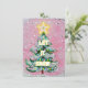Cartão De Festividades Árvore de Natal Rosa Retrô