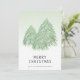 Cartão de Feriado Artístico de Árvore Árvore de Água Verde. Desenho festivo de aquarelas verdes de Natal com neve e um desejo Feliz de Natal. Personalize o texto na frente e a mensagem na parte traseira.