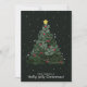 Uma árvore de Natal moderna, de sombras e bagas, sobre um fundo preto nestas cartas, apresenta sua saudação na frente e sua personalização e nomes nas costas. Selecione Matte para o papel mais pesado e alta definição para melhor qualidade de impressão.