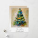 Cartão Festivo De Férias De Natal De Árvore Árvore Artística. Desenho festivo de aquarelas coloridas de árvores de Natal com um desejo Feliz de Natal em um roteiro de tendências. Personalize o texto na frente e a mensagem na parte traseira.