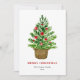 Árvore natalina de aquarela em uma placa de férias de wicker Basket | Envie Cartões de natal para a família e amigos com este cartão de feriado personalizável. Apresentava a árvore de Natal com ornamentos vermelhos num padrão de gingham de cesto mais vestido. Personalize adicionando seus próprios detalhes. Você também pode mudar a imagem traseira para uma foto ou qualquer imagem que desejar. Itens correspondentes estão disponíveis.