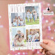Placa de Cartões de natal rosa das árvores de colagem de fotos do NATAL DE MERRY moderno. Envie cartões de natal MERRY CHRISTMAS com este cartão de Natal fotográfico com 4 fotos e um abstrato de Natal moderno e um padrão de árvores de inverno design em cor-de-rosa e mauve roxas. ASSISTÊNCIA: para obter ajuda sobre a modificação do design, transferir o design para outro produto ou, se você quiser coordenar itens, entre em contato com o designer ANTES DE ENCOMENDAR através da guia MENSAGEM de Bate-papo Zazzle ou envie um email para makeitaboutyoustore@gmail.com.