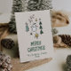 Se você está procurando por um simples cartão de Natal minimalista, bonito e facilmente editável. Este é perfeito para você. E como vocês veem a design apresenta uma mão verde feita e desenhada árvores de Natal, estrelas e boneco de neve branco, com a mão verde escrita tipografia de MERRY CHRISTMAS. E seu nome familiar e ano sob ele. E no fundo você tem uma saudação de Natal personalizável e dentro de fotos de família uma mão desenhada em verde.