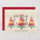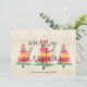 Lindas aquarelas árvores de Natal empunhadas com uma estrela de ouro em listras de marfim sotaque a frente desses cartões de saudação de Natal planos com Feliz Natal e Feliz ano novo em letra chic. Sua saudação personalizada e seus nomes estão atrás. CORRESPONDENTE a itens na nossa coleção.