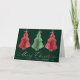 Cartão de Natal elegante, não fotográfico, com 3 ornamentos de árvore de cor d'água, em cores vermelha e verde, pendurado com filete de ouro num fundo verde escuro. "Feliz Natal" é apresentado num roteiro de caligrafia em folha de ouro falso com o nome da sua família e o ano apresentado abaixo. A dentro do cartão exibe sua mensagem pessoal em caracteres verdes escuros tradicionais.