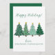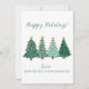 Mande desejos de férias calorosos com este cartão festivo de Natal, com quatro árvores eververdes lindamente decoradas, cobertas de estrelas ouros. A saudação Feliz Feriados! aparece em um roteiro elegante, com espaço abaixo para personalizar seu nome de família. Uma escolha alegre e clássica para amigos, família e colegas de trabalho que adoram designs de férias de eterno.