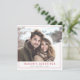 Cartão de Natal bonito com sua foto e saudação na frente e um padrão de árvore de Natal vermelho e branco no verso.