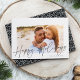 Mande cartões de natal para amigos e família em estilo chic com nossos cartões com fotos elegantes. O design apresenta a sua foto favorita, horizontal ou orientada a paisagem, enquadrada por uma espessa borda branca, com "Felizes Feriados" gravados no topo em um roteiro com letra suave e preta. Personalize com seu nome de família e o ano no canto inferior direito.
