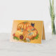 Um grupo de Pumpkins descansando sobre folhas. Sotaque de girassol e gato preto te espiando. Imagem de excelente para outono, Ação de Graças ou Saudações ou Convites de Halloween.