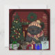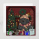 Lindamente desenhada e colorida cachorrinha de Terra Nova como uma avó/avô, desfrutando do fogo quente e das luzes da árvore de Natal, preparando seus presentes para a manhã.