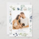Joyful Artic Winter botânico, cartão de férias multifoto. Cartões, elegantes quadros de aquarelas de inverno, algodão, folhas e palitos com cores azuis coordenadas e texto. Foto do solteiro na frente e duas fotos na parte traseira.