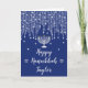 Esta elegante e sofisticada carta de Chanucá Feliz pode ser personalizada com um nome ou título, como filha, neta, sobrinha, amiga, etc. Apresenta belas luzes de fadas de cordas prateadas com faíscas de diamante, uma vela menorah e a Estrela de David. O texto combina o script manuscrito e as fontes serif para uma aparência na moda e moderna.