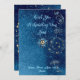 Espalhem aplausos, felicidade e boa vontade na véspera do Ano Novo para a família e amigos próximos. Com este cartão de saudações sombrio, a celebração torna-se mais alegre. A trabalho de arte apresenta tons profundos de flora azul brilhante e azul e estrelas espiralantes com vibrações de ouro joias. Análogo a uma noite escura de inverno cheia de estrelas cintilantes, o lado oposto tem um brilho correspondente e um profundo ambiente azul para fazer as celebrações de Ano Novo brilharem ainda mais. O TEXT pode ser facilmente personalizado com a sua escolha de script e palavras. o