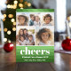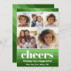 FRONT - 5 Colagem de Fotografias com faixas retrorreflectoras verde-oliva brilhante. A palavra "aplausos" está numa fonte divertida que coordena com o fundo não tradicional. As 5 fotos funcionam melhor se você recortar suas fotos no quadrado antes de carregar. Adicione a sua saudação e assinatura familiar a este design eclético e colorido. BACK - Padrão da faixa retrorativa numa mistura de verde e azeitona. Se precisar mover alguma coisa, clique no botão personalizar para fazer alterações.