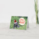 Foto de um urso negro selvagem vestindo um chapéu de Papai Noel e mastigando um bocado de grama na floresta. O urso está dizendo, "Tenha um Natal Muito Feliz!" Esta imagem original seria um presente de excelente para qualquer amante da vida selvagem!