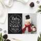 "Baby it's Cold Outside" O cartão de saudação de Natal design apresenta uma fonte moderna de script branco com floco de neve e sotaques estelares em um quadro decorativo com texto personalizado de "Desejos mais quentes" que pode ser personalizado. O fundo preto pode ser modificado. Design é perfeito para as famílias que celebram o primeiro Natal do bebê recém-nascido!