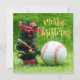 Cartão De Festividades Beisebol Feliz Natal com bola no Holid verde