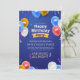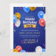 Bright and fun Happy Birthday Party invitation featuring colorful balloons on a bold blue background. Perfect for all ages and easy to customize with your party date, time, and venue. A lively design that sets the mood for a joyful celebration.